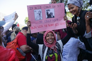 Residents of Bromwell street in Woodstock protest neighbourhood evictions at the Biscuit Mill