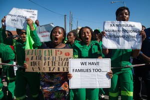Emergency medical service (EMS) workers march in Philippi to protest violence towards them while on duty