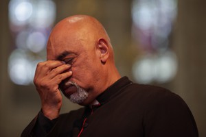 Dean Michael Weeder speaks attends the Ahmed Kathrada memorial at St. Georges Cathedral in Cape Town.