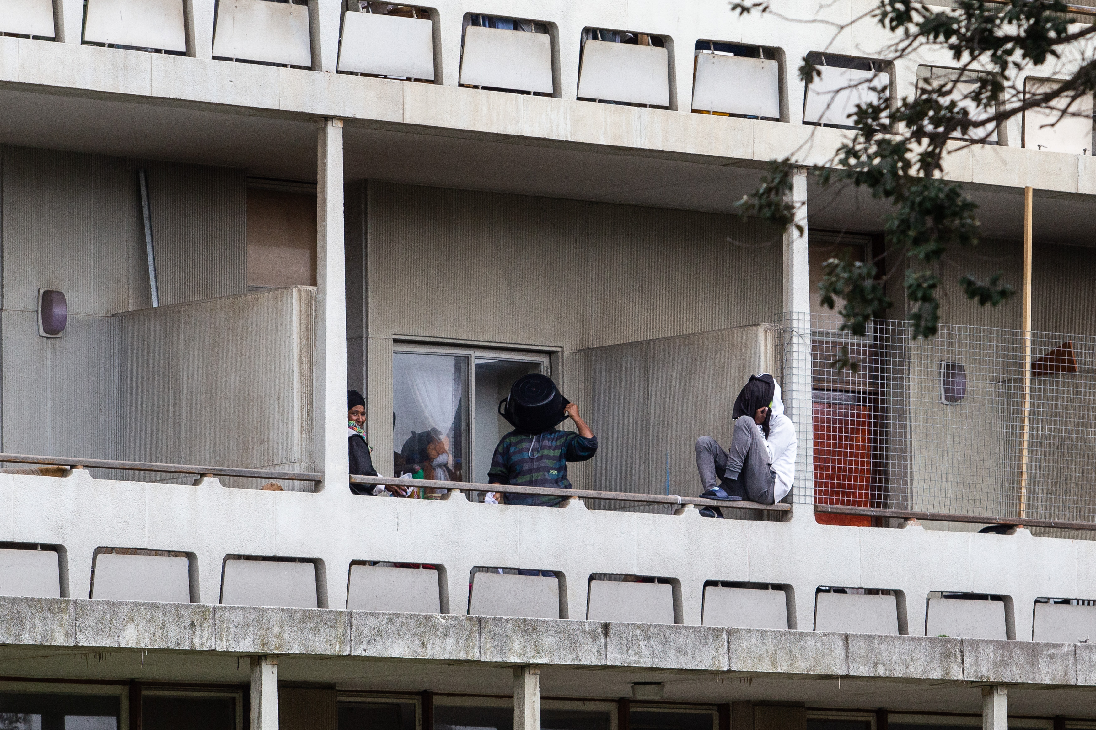 Residents occupy the old Helen Bowden Nurses Home near the V&A Waterfront in Cape Town.