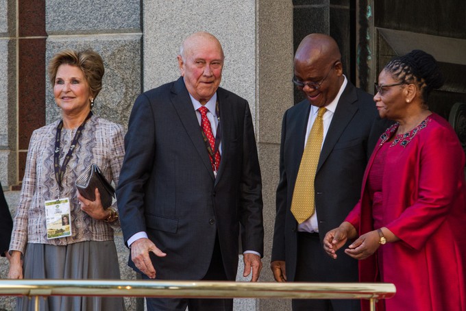 Former South African president FW de Klerk and his wife Elita attend the 2020 State of the Nation at Parliament in Cape Town