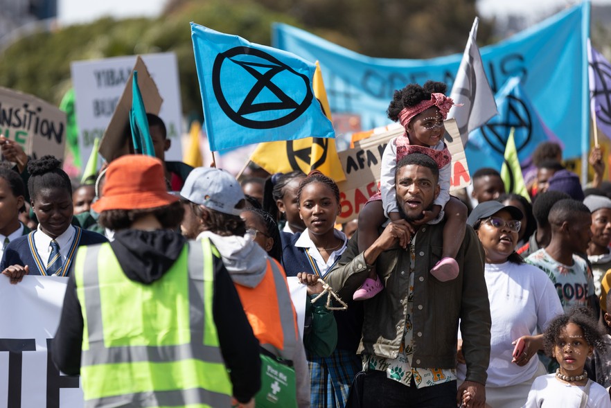 Hundreds march to Parliament, calling for action against climate change in Cape Town.