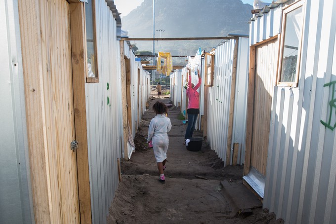 A young girl walks through a temporary relocation area (TRA) made for residents who were affected by a fire that engulfed the Imizamo Yethu informal settlement in Hout Bay. At the amt time, residents were protesting over the delay in reblocking.
