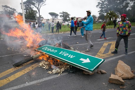About 150 Ocean View residents block Kommetjie road in Cape Town during a protest over inadequate policing.